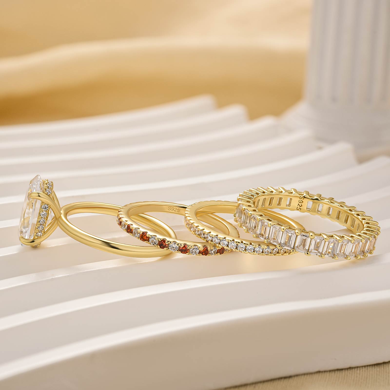 Design Inspiration: Inspired by the harmony of layers and light, this ring set celebrates the beauty of depth, balance, and individuality. Featuring a brilliant centerpiece surrounded by delicately crafted bands, the design creates a refined stacked silhouette that feels both luxurious and effortlessly wearable.