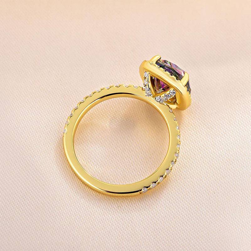 Louily Unique Yellow Gold Halo Cushion Cut Alexandrite Engagement Ring In Sterling Silver