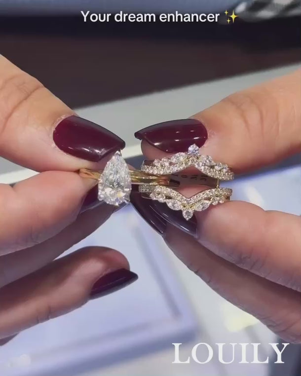 Inspired by the tenderness of eternal love, this design tells a story of devotion and unity. The pear-cut stone, reminiscent of a teardrop of joy, represents emotion and sincerity, while the enhancer band signifies protection and harmony, encircling the heart it treasures. Bathed in 18K yellow gold, it glows like sunlight—gentle yet radiant, a timeless symbol of love that shines through every moment shared together.