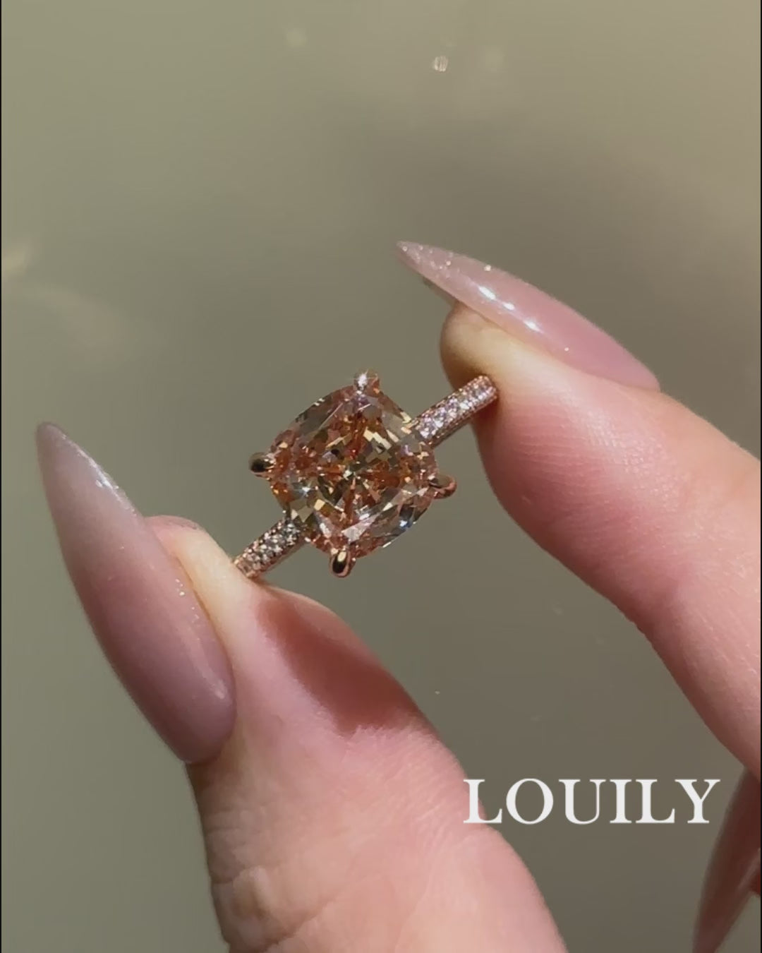 Louily 3.5Ct Rose Gold Solitaire Cushion Cut Engagement Ring with Double Hidden Halo