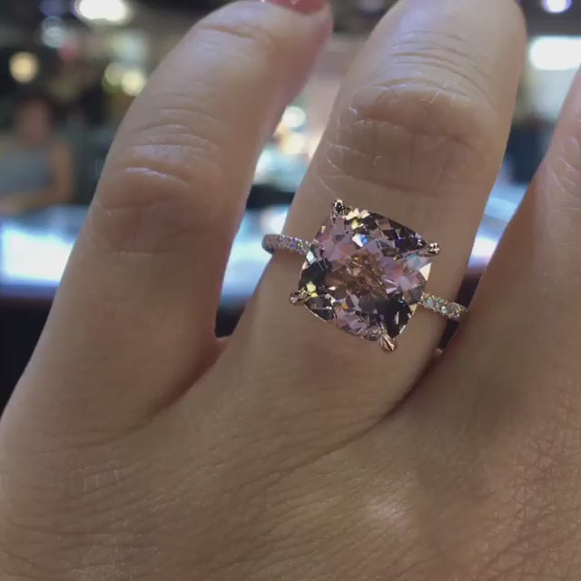 This ring redefines classic romance with a modern secret. The soft, luminous cushion-cut solitaire is elevated by a unique double hidden halo, creating a captivating frame of light that appears to magically emanate from within. Set in warm 18k rose gold, the design blends timeless elegance with a touch of delightful surprise, symbolizing a love that is both beautifully evident and full of hidden depth.