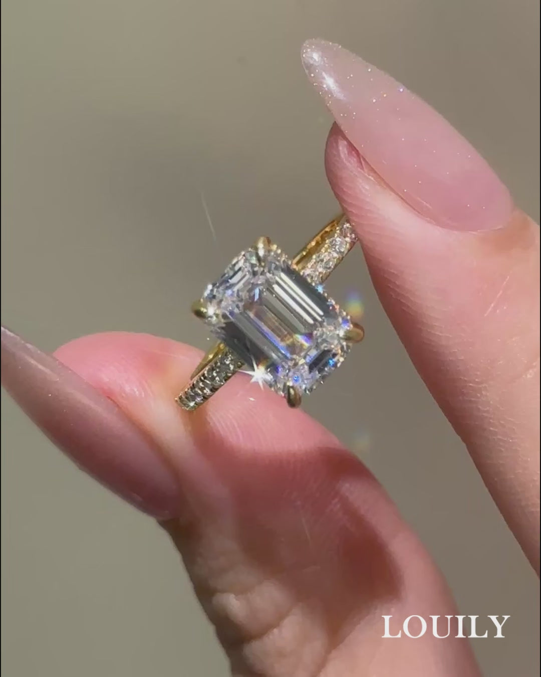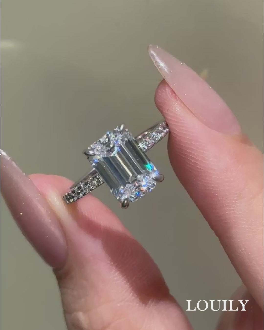 Louily Classic Emerald Cut Engagement Ring In Sterling Silver