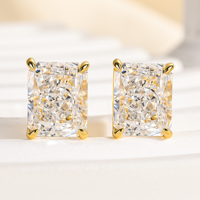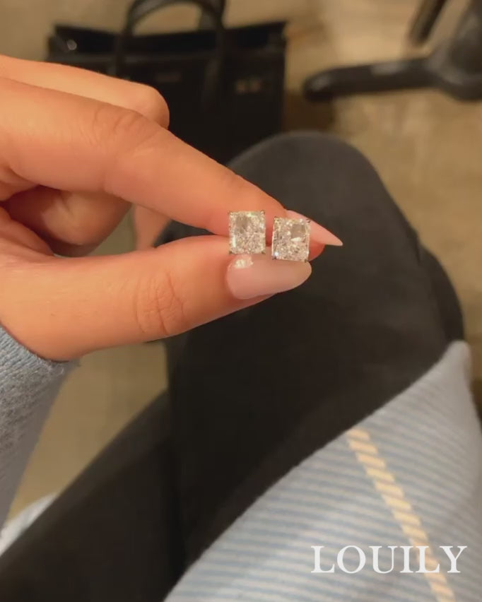 Louily Classic Radiant Cut Women's Stud Earrings In Sterling Silver
