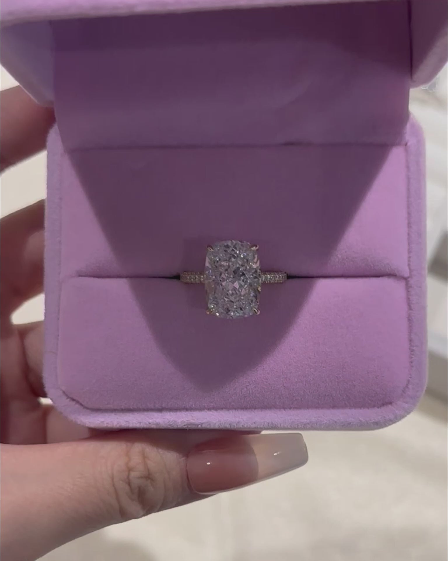 Louily Luxurious Elongated Cushion Cut Engagement Ring For Women In Sterling Silver