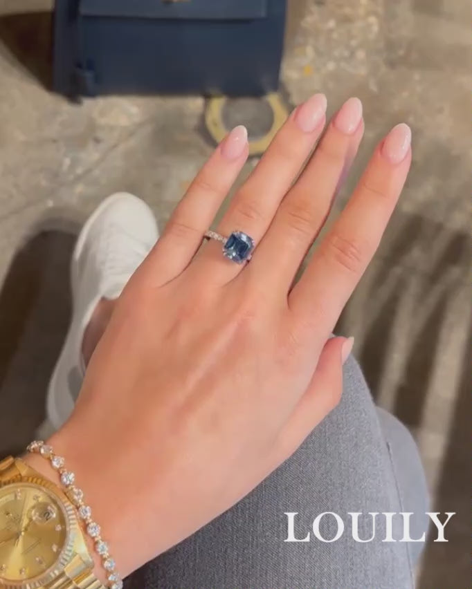 The Honorable 4.5Ct Asscher Cut Blue Stone Engagement Ring is designed to capture attention with its deep, luxurious hue and vintage-inspired cut. The Asscher cut brings a refined, architectural feel to the piece, while the rich blue center stone evokes a sense of depth, mystery, and calm. Crafted as a travel ring, it blends beauty and practicality, allowing you to carry a sense of luxury wherever you go. This ring is a modern expression of classic romance, perfect for those who love a touch of bold sophistication. Available In Yellow Stone.