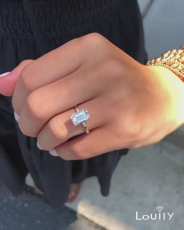 Louily Gorgeous Two-tone Emerald Cut Engagement Ring