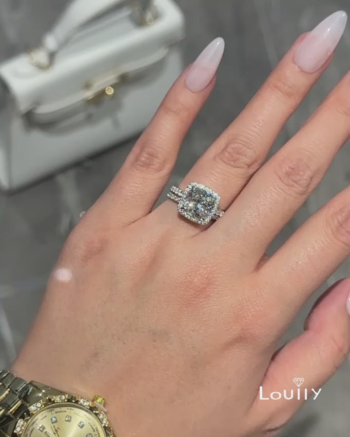 Louily Halo Cushion Cut Wedding Ring Set In Sterling Silver