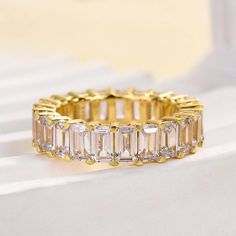 Louily Eternity 5 Ct Emerald Cut Women's Wedding Band In Sterling Silver