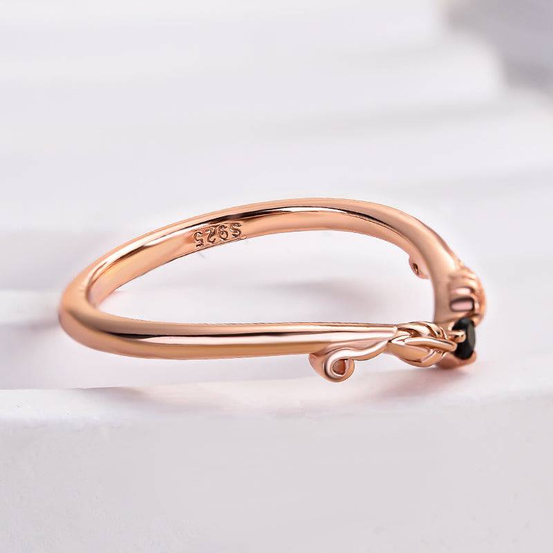Louily Unique Leaf Design Black Stone Round Cut Wedding Band In Sterling Silver