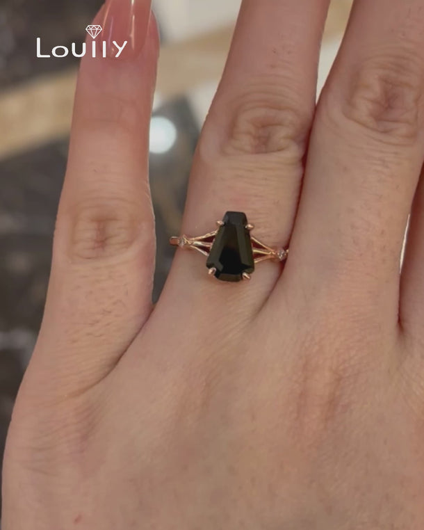 Say yes to a mysterious, daring future with this unique coffin cut engagement ring! Its unique cut will capture the eye and set your style apart with a daring edge. Conquer life's uncertainties with a ring that embodies a courageous spirit!