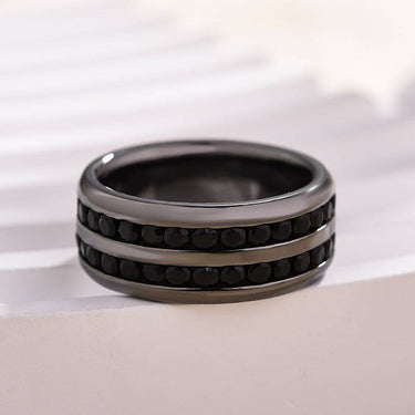 Louily Two Row Design Black Gold Black Sapphire Men's Wide Wedding Band In 925 Sterling Silver