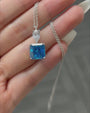 Louily Honorable Radiant Cut Blue Sapphire Necklace In Sterling Silver