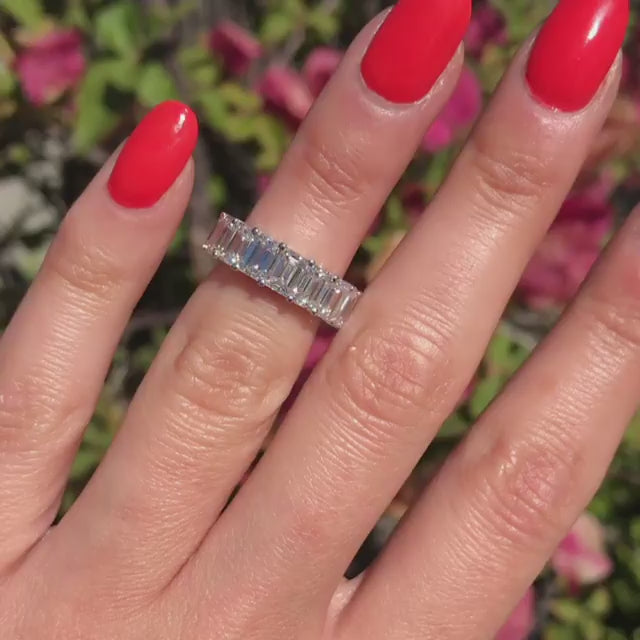 Louily Eternity 5 Ct Emerald Cut Women's Wedding Band In Sterling Silver
