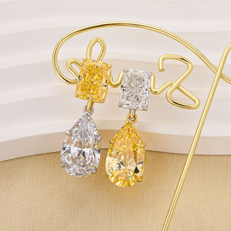 Delicately Balanced SparkleThese dainty drop earrings feature a stunning mix of radiant cut and pear cut stones, creating a graceful silhouette that catches the light with every turn. The pairing adds visual interest while still feeling refined and elegant.