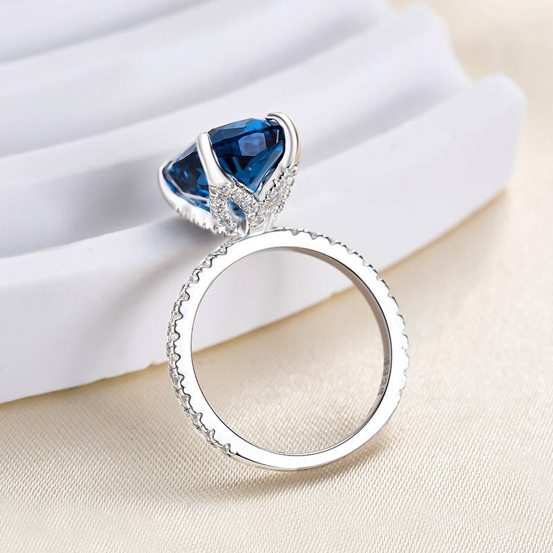 Louily Exclusive Cushion Cut Montana Blue Sapphire Engagement Ring In Sterling Silver