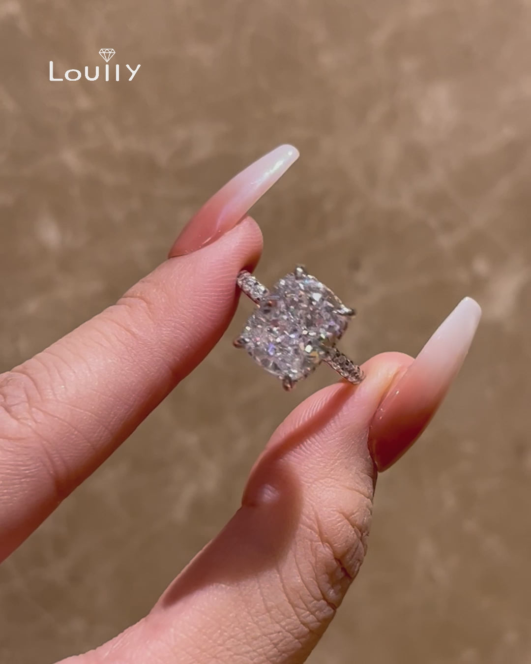 Louily Elegant Cushion Cut Engagement Ring For Women In Sterling Silver