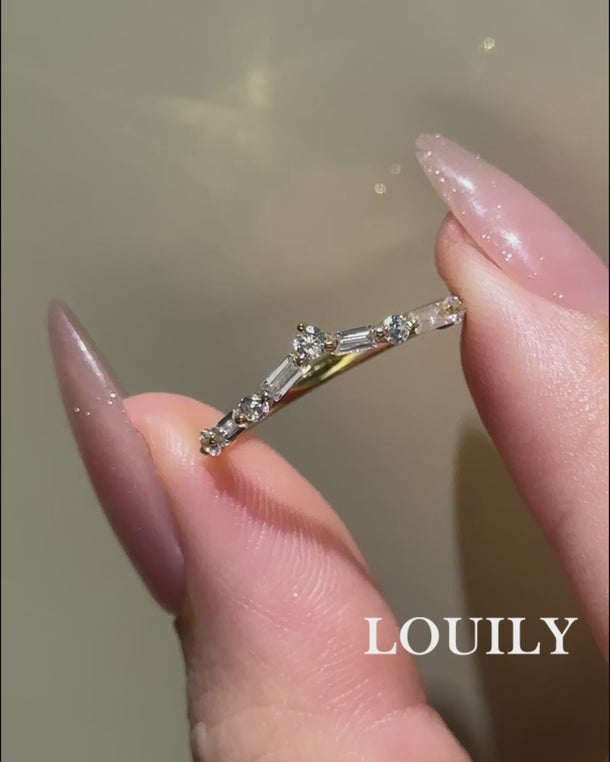 Louily Exclusive V-shaped Design Half Eternity Wedding Band