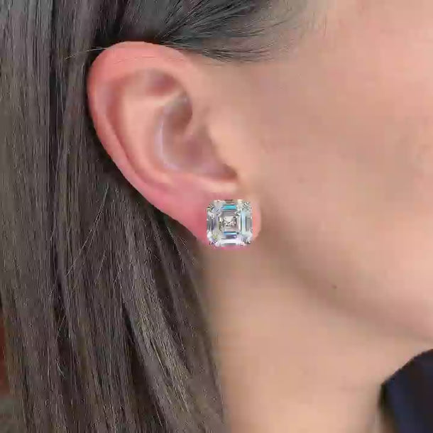 Louily Classic Asscher Cut Women's Stud Earrings In Sterling Silver