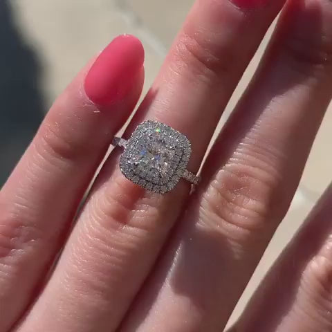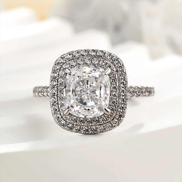 Louily Double Halo Cushion Cut Engagement Ring In Sterling Silver
