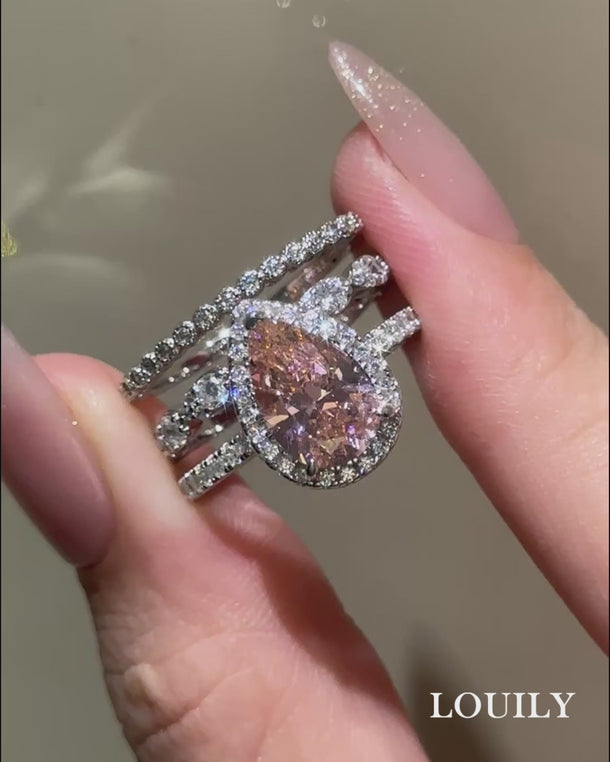 Louily Halo Pear Cut Synthetic Morganite 3-Pieces Wedding Ring Set