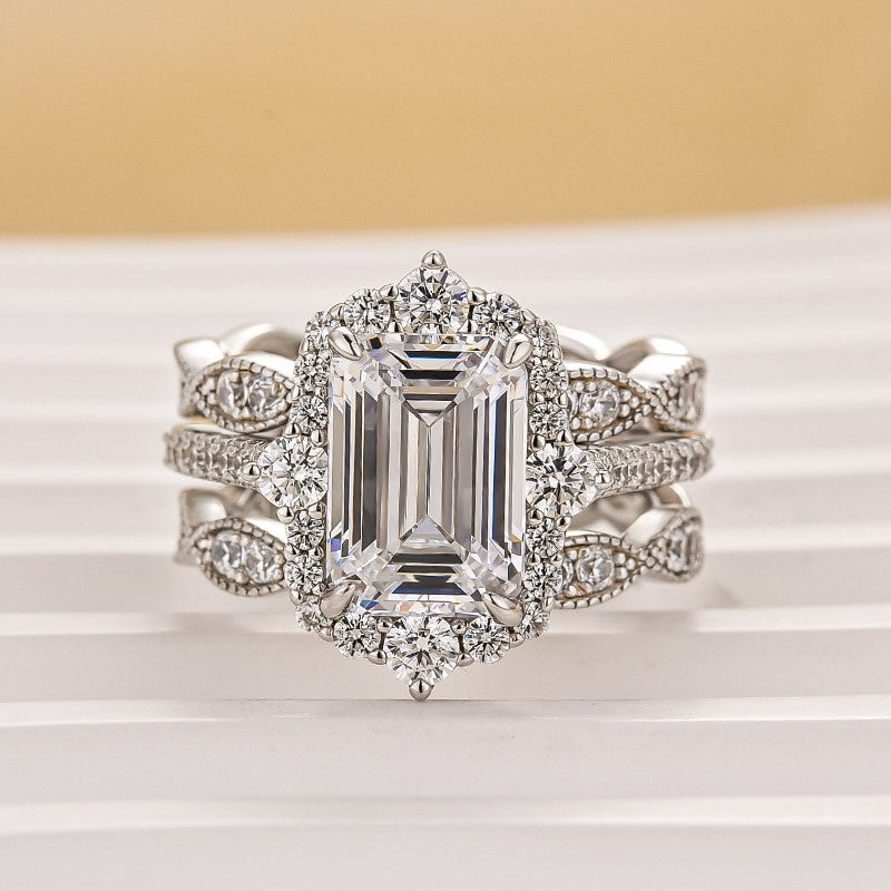 3.5Ct Emerald Cut Halo Insert Wedding Ring Set With Engagement Ring Enhancer