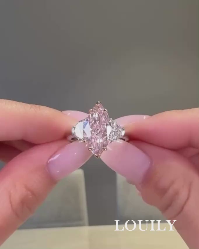 6.0Ct Pink Marquise Cut Three Stone Engagement Ring In Sterling Silver