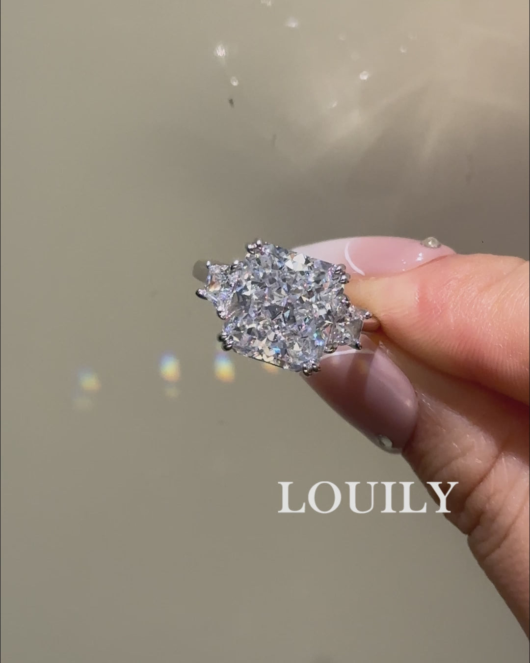 Louily Luxurious 12Ct Crushed Ice Hybrid Radiant Cut Three Stone Engagement Ring