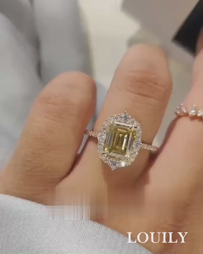 Vintage 3.5Ct Emerald Cut Yellow Stone Engagement Ring In Sterling Silver