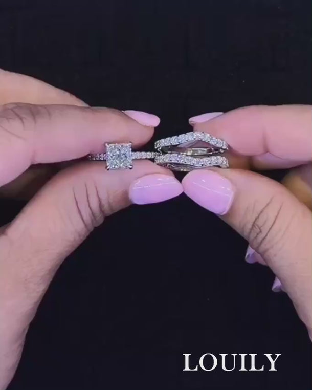 2.0Ct Princess Cut Insert Wedding Ring Set With Engagement Ring Enhancer