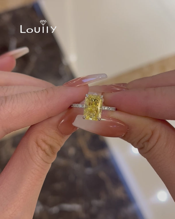 Louily 3.3 Carat Simulated Diamond Yellow Sapphire Radiant Cut Engagement Ring In Sterling Silver