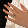 This engagement ring features a dazzling 4.0 carat round-cut green moissanite, set in polished white gold to enhance its vivid color. The minimalist band design draws the eye to the gemstone’s depth and sparkle, blending sleek modern style with everlasting elegance. An ideal choice for anyone seeking a distinctive ring that feels refined, memorable, and truly unique.