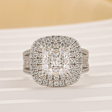 This 3.0Ct princess cut double halo split shank engagement ring in sterling silver brings together timeless beauty and contemporary detail. The sharp brilliance of the princess cut is beautifully framed by a double halo that adds extra sparkle and dimension, while the split shank offers an elegant and balanced silhouette. It’s the kind of ring that catches the light—and attention—effortlessly, making it a stunning symbol of love with a bold, confident edge.