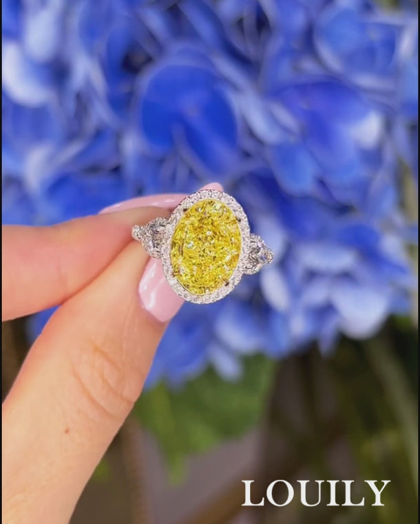 Louily Luxury Yellow Stone Halo Oval Cut Engagement Ring