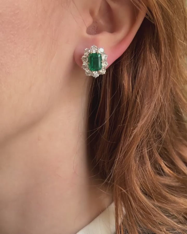 Louily Vintage Flower Design Emerald Cut Emerald Green Earrings In Sterling Silver