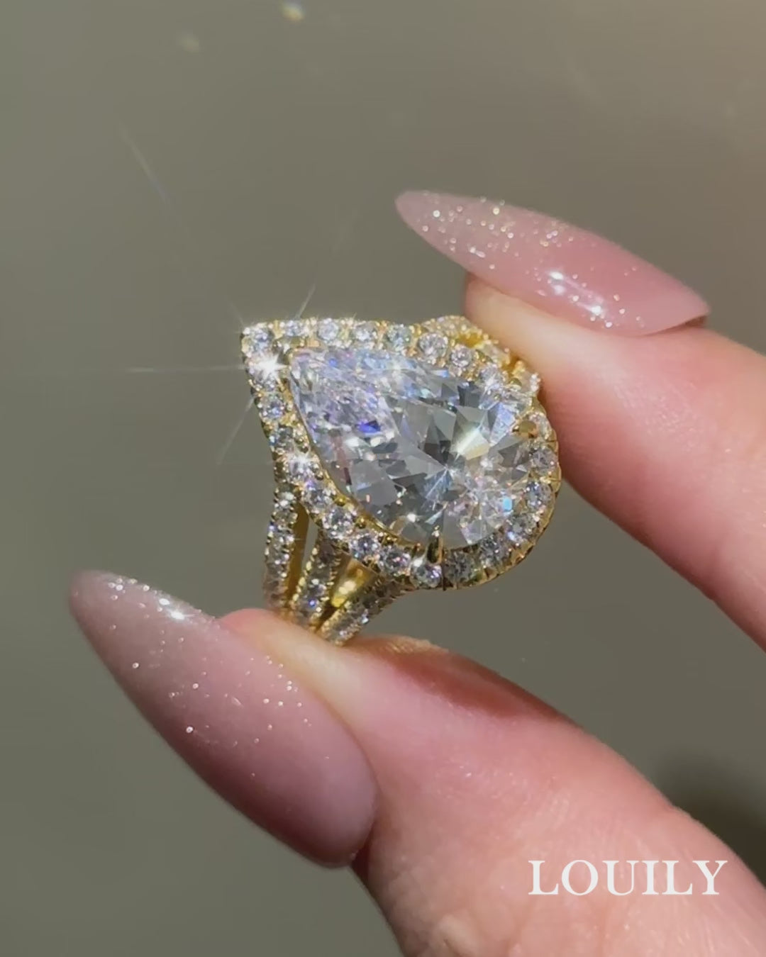 Louily Vintage Split Shank Halo Pear Cut Engagement Ring In Sterling Silver