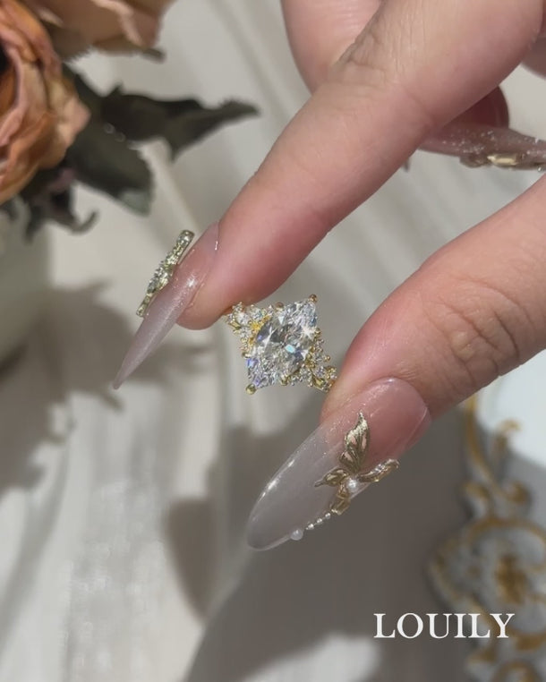 This 3.0Ct marquise cut engagement ring brings vintage-inspired charm to life with its elongated silhouette and intricate detailing. Set in gleaming sterling silver, the design showcases the center stone beautifully, catching the light from every angle. Perfect as a travel ring or a statement piece, it feels both romantic and refined—an ideal choice for those who love antique style with modern sparkle.