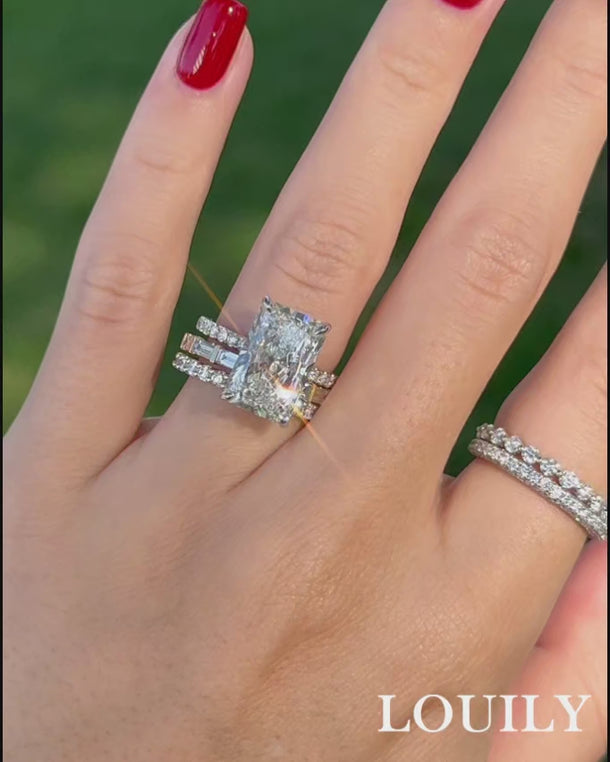 Louily Timeless 3PCS Radiant Cut Wedding Ring Set