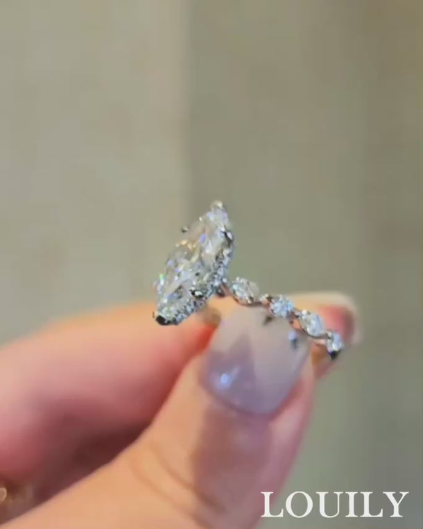 This 3.0Ct marquise cut engagement ring features a gracefully elongated center stone set in sterling silver, creating a refined yet eye-catching look. Its sleek design makes it perfect for travel, offering all the sparkle you love in a piece that’s comfortable and practical to wear anywhere.