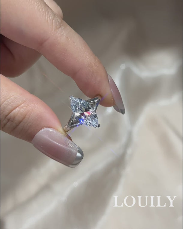 3.0Ct Marquise Cut Split Shank Engagement Ring Travel Ring In Sterling Silver
