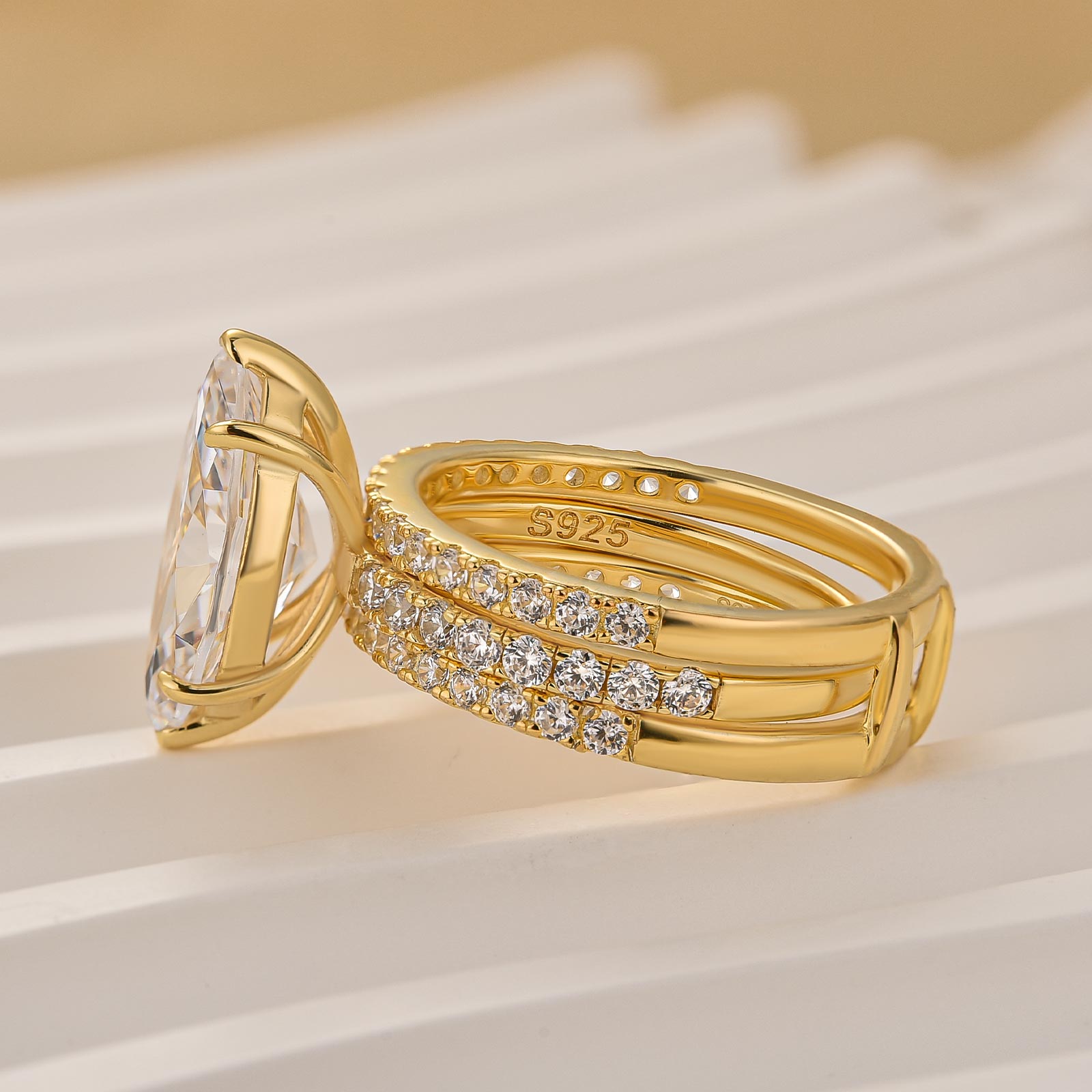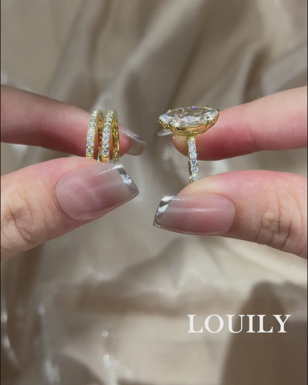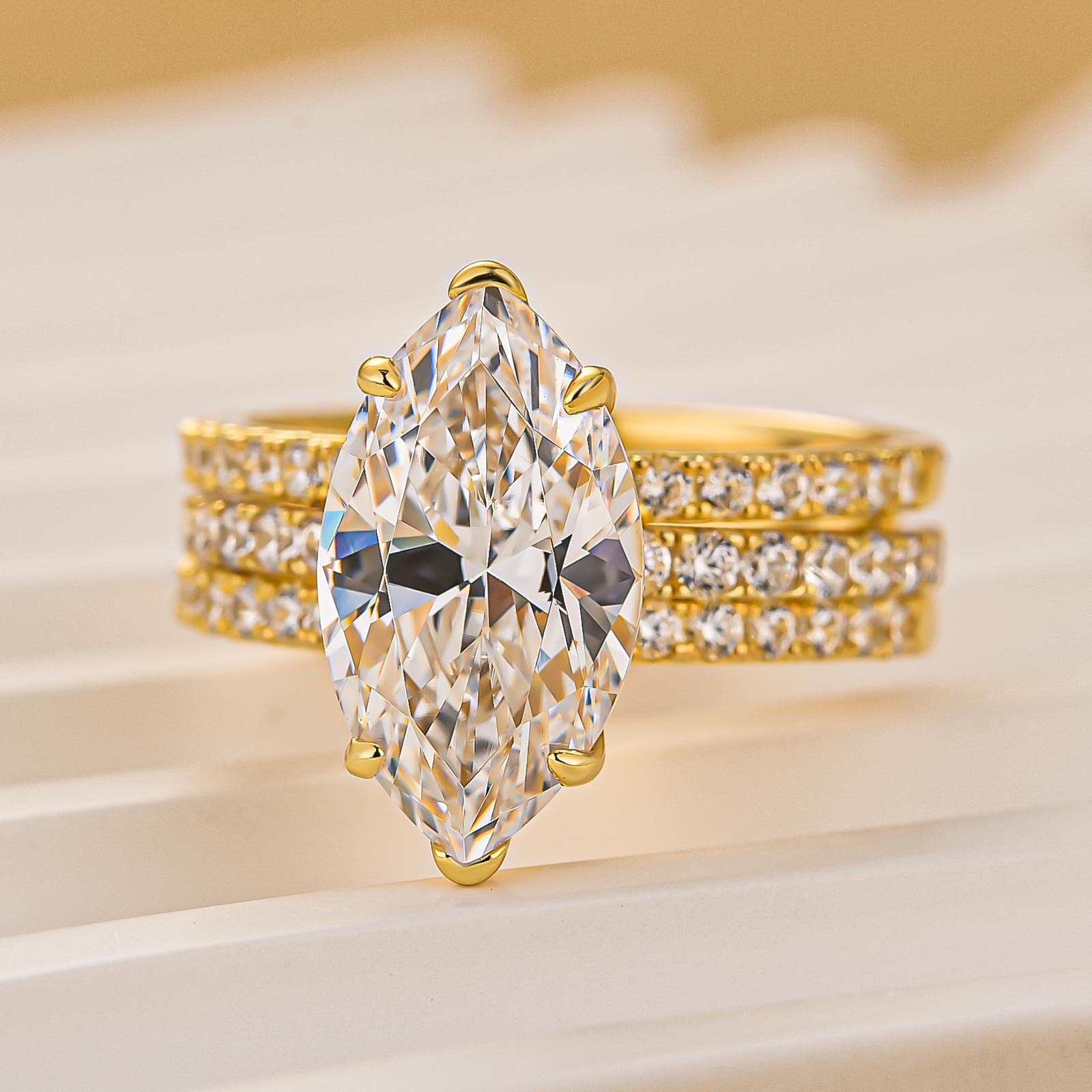 This wedding ring set features a 4.0-carat marquise-cut center ring paired with a coordinating engagement ring enhancer. The elongated marquise cut creates a flattering silhouette, while the enhancer adds dimension and elegance, making it perfect for someone who appreciates refined sparkle with a modern, customizable touch.