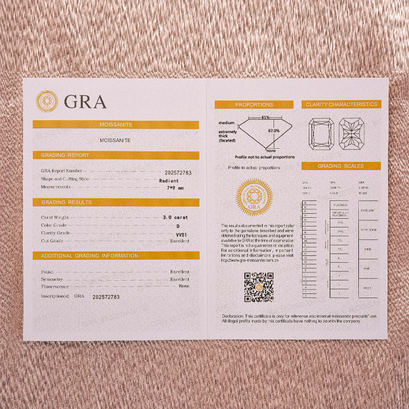 In terms of toughness, moissanite ranks second on the Mohs hardness scale just behind diamond in hardness and scratch resistance. Moissanite’s durability makes it an ideal gem for daily wear and ensures it will last a lifetime.