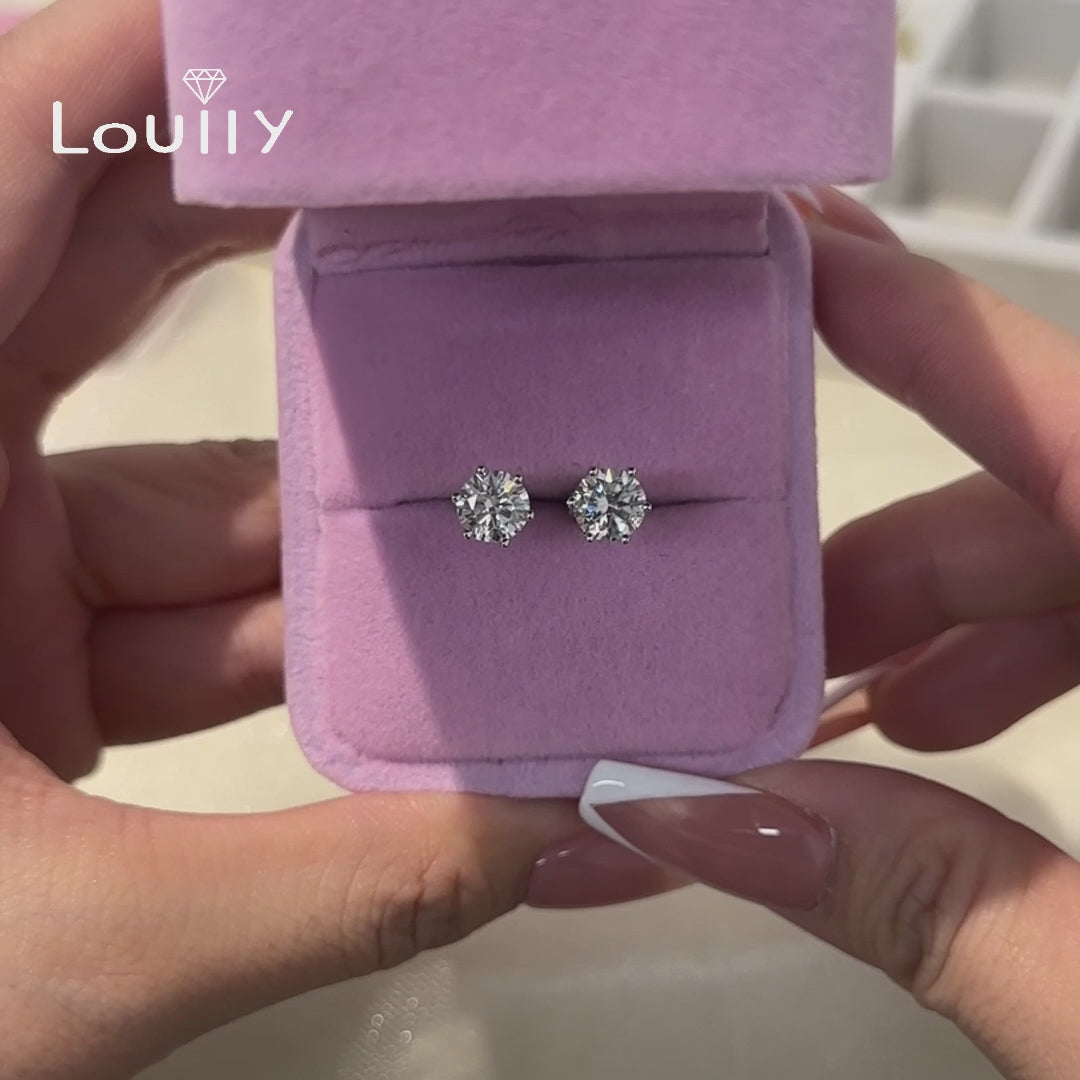 Louily Moissanite 2.0 Carat Round Cut Stud Earrings