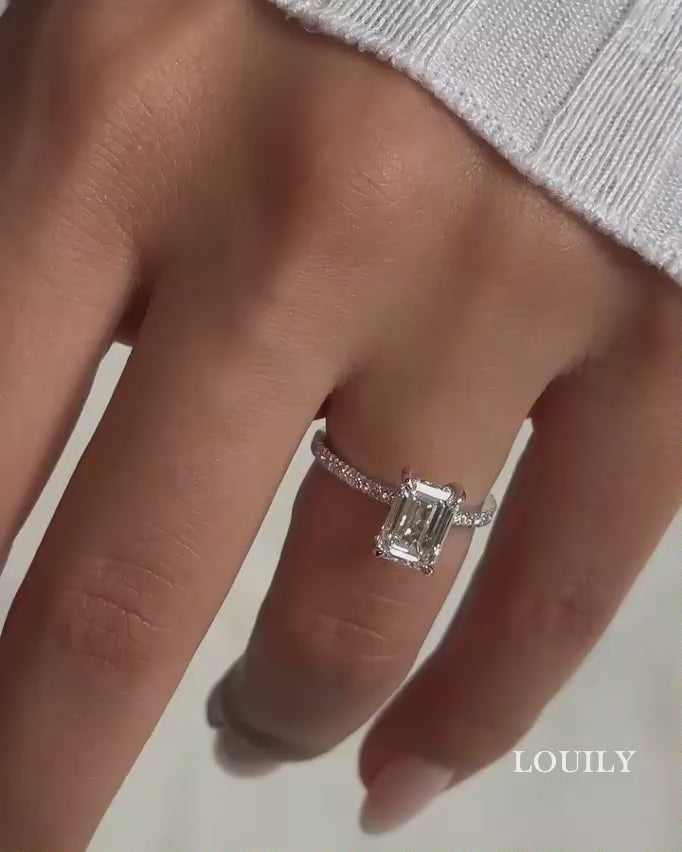 Louily Moissanite 3.5 Carat Emerald Cut Engagement Ring