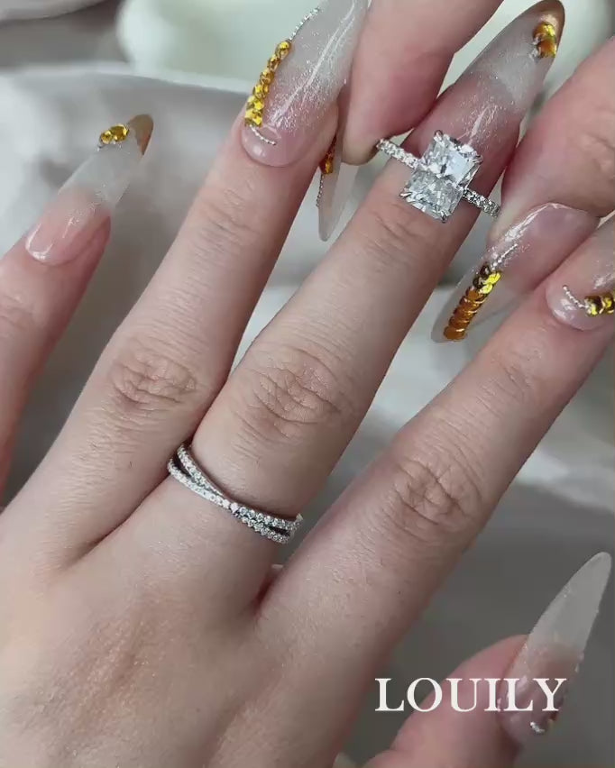What sets this ring apart is the striking criss cross band—crafted from nickel-free sterling silver with a luminous white gold finish—which represents the intertwining of two paths becoming one. The flowing crossover design not only adds visual intrigue but also carries a deeper meaning of unity and eternal connection.