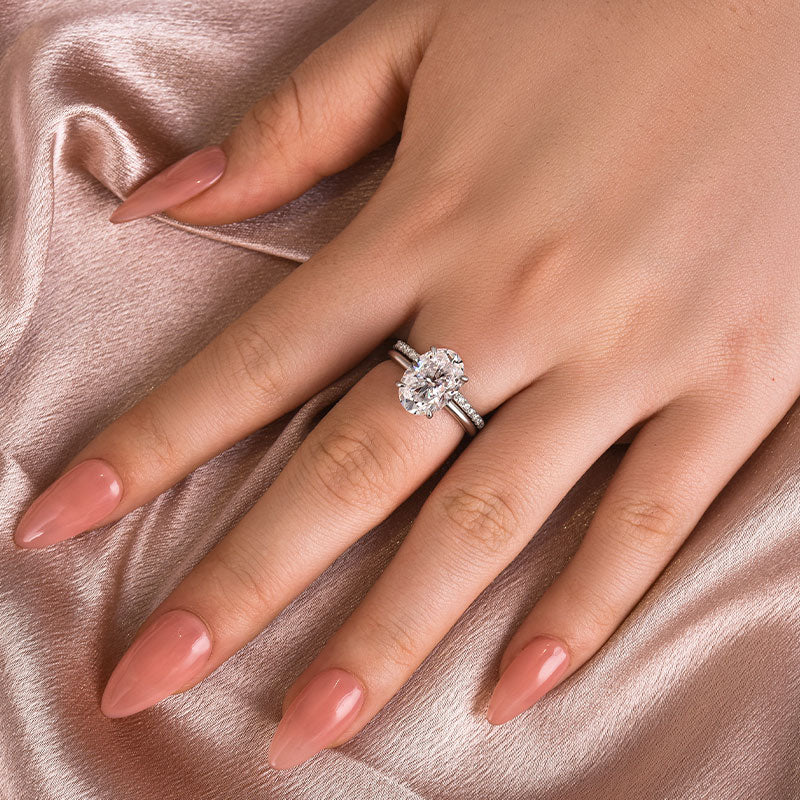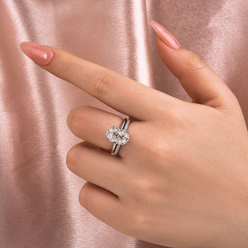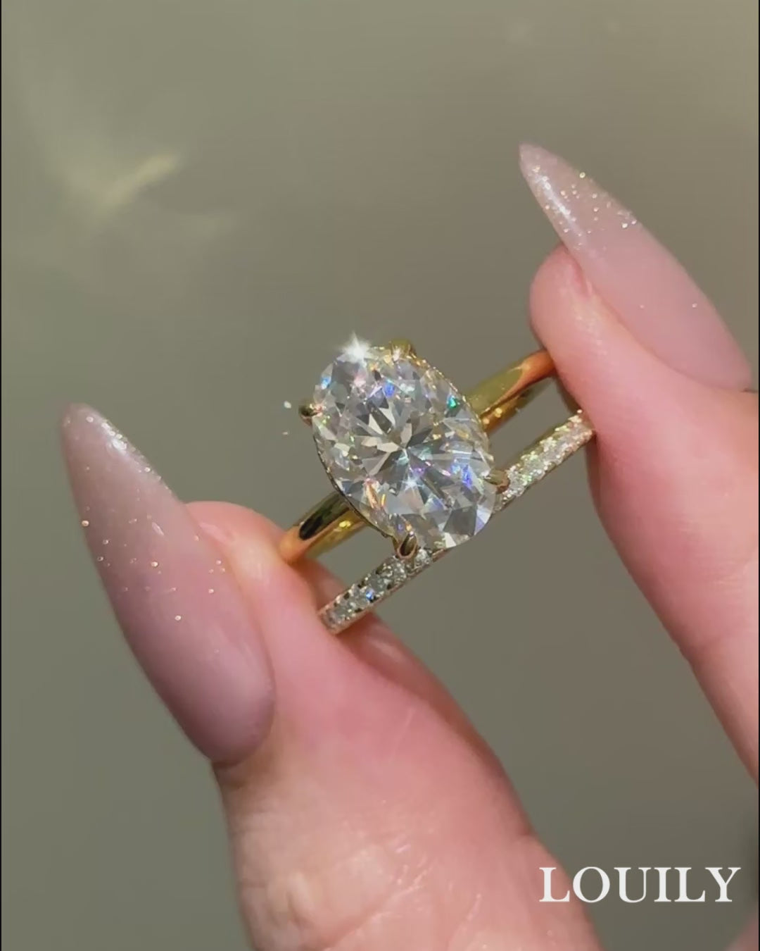 Louily Moissanite 4.0 Ct Hidden Halo Solitaire Oval Cut Wedding Ring