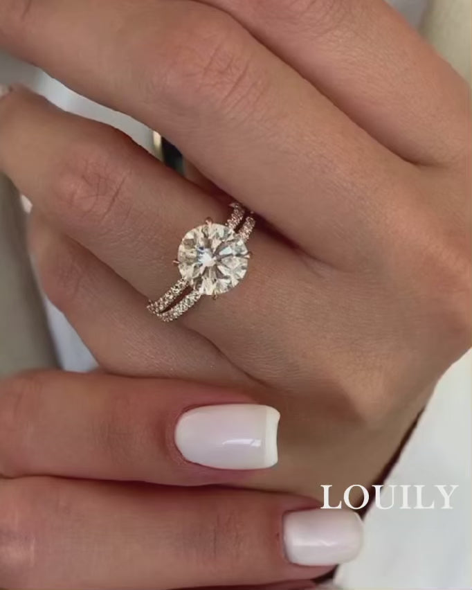 Louily Moissanite Dazzling 4.0 Carat Round Cut Yellow Gold Wedding Ring Set