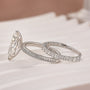 Design Inspiration: This stunning 3.0Ct engagement ring set features a striking marquise-cut Moissanite at its center, complemented by a band adorned with sparkling round-cut diamonds. The elongated marquise shape adds a dramatic touch, creating a unique and elegant focal point. Surrounding it, the round diamonds on the bands offer a classic sparkle, perfectly balancing the boldness of the central stone.