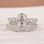 Design Inspiration:This romantic 3.0Ct Moissanite ring set is inspired by the quiet moments where love feels effortless and eternal. The oval-cut center stone glows with soft brilliance, symbolizing a love that grows deeper with time. Its graceful shape elongates the finger, creating an elegant and feminine presence. Accented by round-cut Moissanite along the band, each stone adds a gentle sparkle—like whispered promises surrounding the heart of the design.