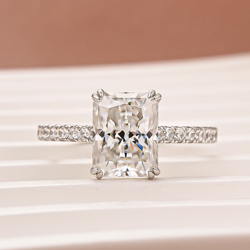 Moissanite Radiant Cut 3.0Ct US Standard Fit Hypoallergenic 925 Sterling Silver with Platinum Plating Lifetime Warranty