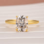 This 2.5 carat cushion-cut moissanite sits at the heart of a rich yellow gold band, creating a look that’s both timeless and fresh. The solitaire design lets the stone’s brilliance shine without distraction, while the smooth band gives a comfortable, elegant feel on the hand.